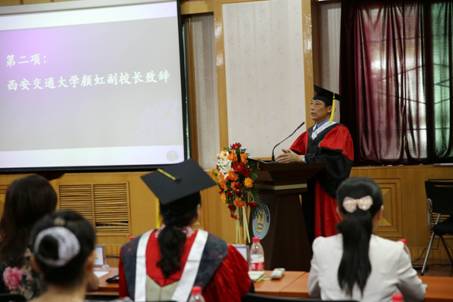 6月5日下午4:00 西安交通大学医学部护理学系在护理楼多功能会议厅隆重举行2015届护理学系本科生毕业典礼。西安交通大学副校长、医学部主任颜虹,副主任王子明,医学部党工委书记耿剑平,医学部人才培养处处长张明、副处长吴小健,交大一附院护理部领导,启德书院常任辅导员,教务处及第一附属医院教师代表,护理学系全体师生和毕业生家长出席毕业典礼。